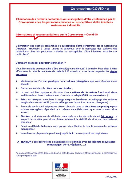 COVID-19 – Et vos déchets alors ? Mise à jour